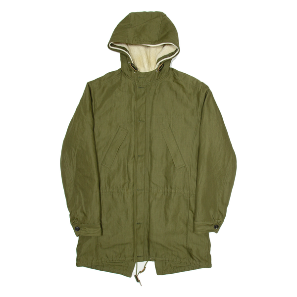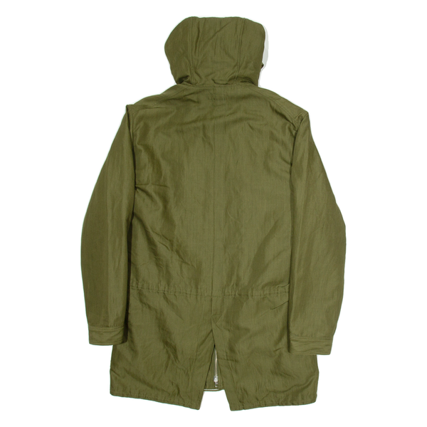 Mens Overcoat Jacket Green Hooded L
