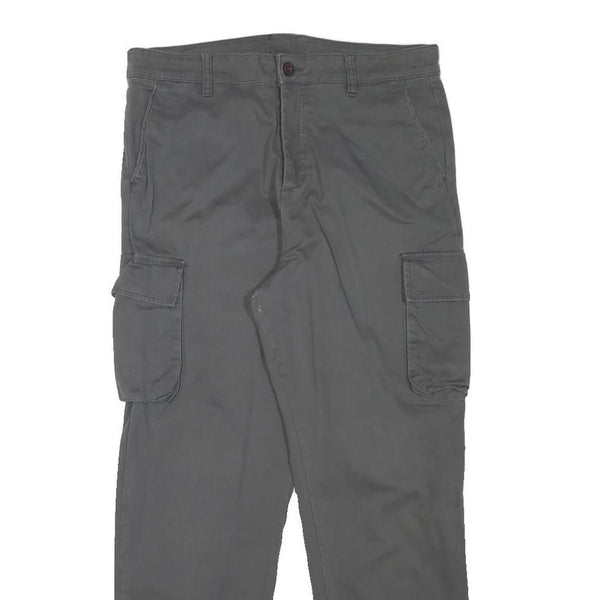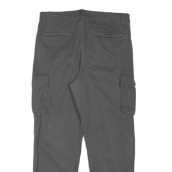 Mens Regular Fit Grey Cotton Blend Cargo Trousers W33 L29 Zip Closure Casual