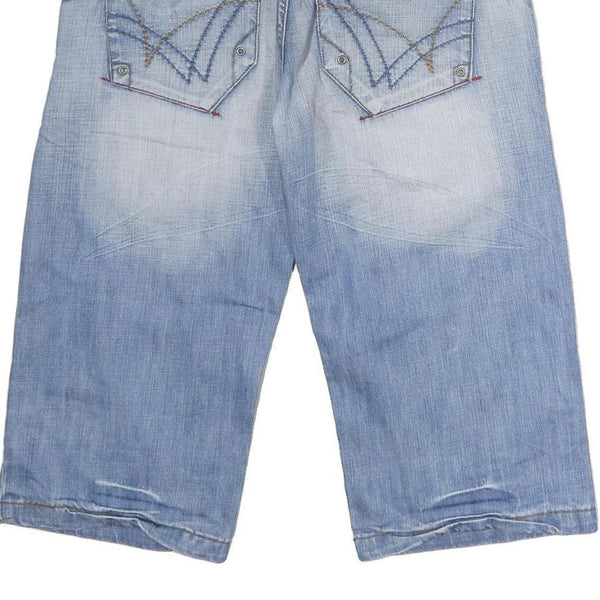 MONOPOL Mens Cotton Blue Denim Casual Shorts L W32 Zip Pockets Relaxed Fit