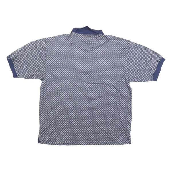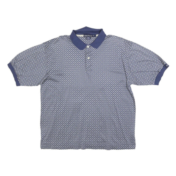 NAUTICA Mens Blue & White Printed Short Sleeve Polo Shirt L Cotton Blend Casual