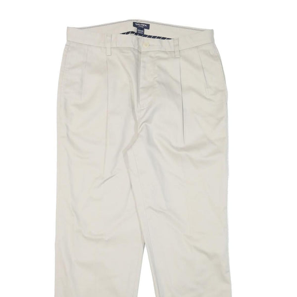 NAUTICA Mens Cotton Blend Cream Regular Straight Trousers W33 L30 Classic Style