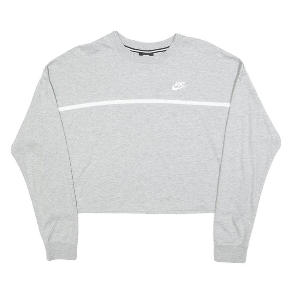 NIKE Womens Grey Crew Neck M Cotton Blend Sweatshirt Long Sleeve Casual