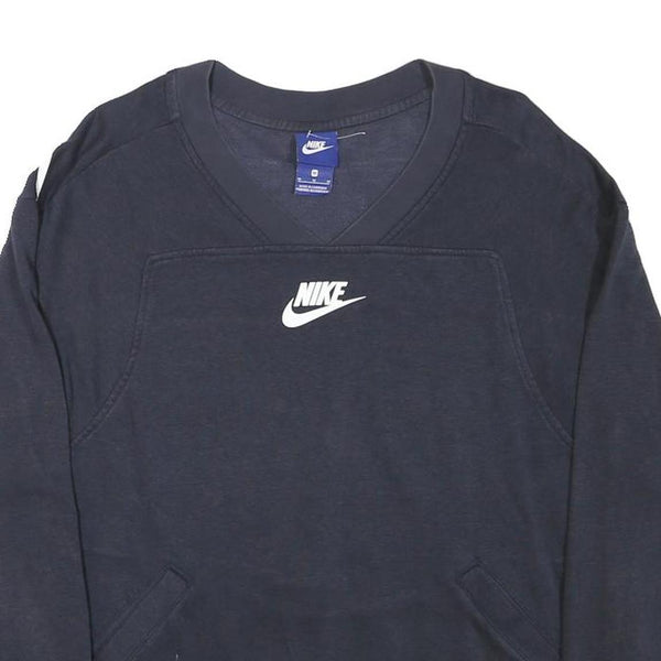 NIKE Womens Navy Blue Sweatshirt V-Neck M Cotton Blend Pullover