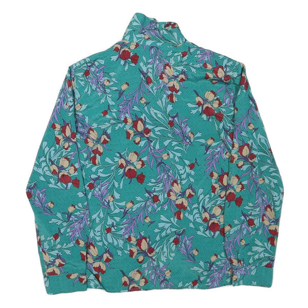 Notations womens green floral printed long sleeve collared shirt m polyester