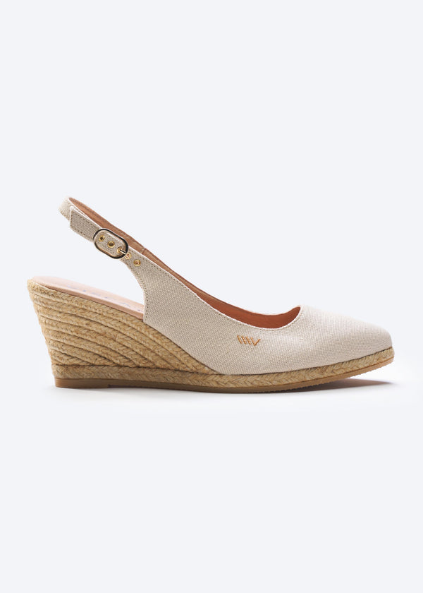 These stunning medium wedge slingback espadrilles should be in every woman’s wardrobe. Featuring a closed pointed toe, these comfortable buckle wedge espadrilles feature a gorgeous 3” heel and an easily adjustable strap to make you shine wherever you are. If there’s only one pair of shoes for you this summer, these are the ones. Handmade in Spain, naturally.