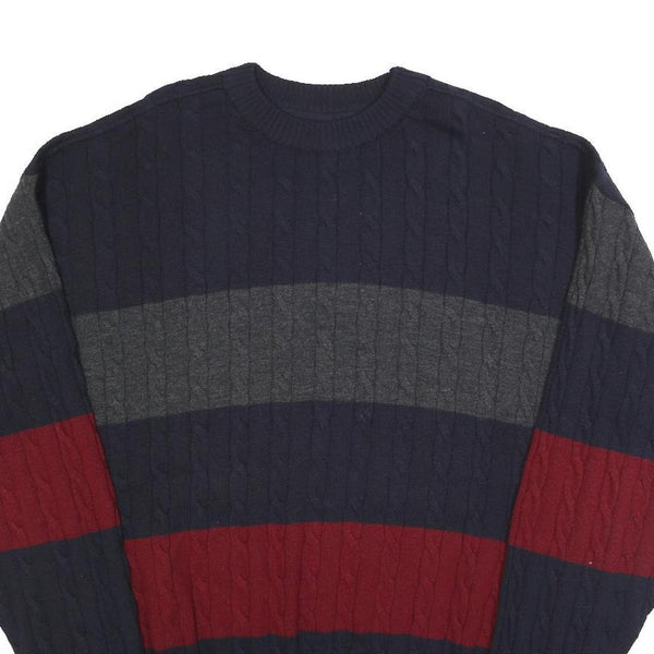 PAUL & SHARK Mens Navy & Red & Grey Patterned Wool Cable Knit Jumper 2XL Classic