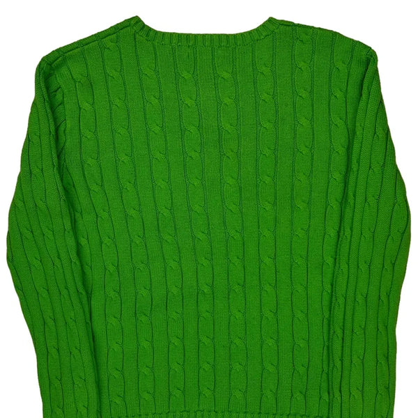 Bright Green Cable Knit Top With Yellow Logo Embroidery.