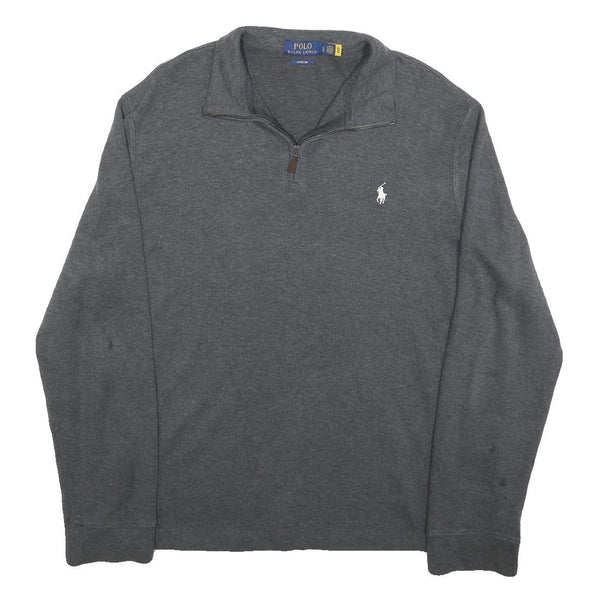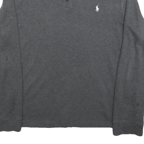 POLO RALPH LAUREN Mens Grey Pullover Plain Crew Neck Basic Knit L Cotton Jumper
