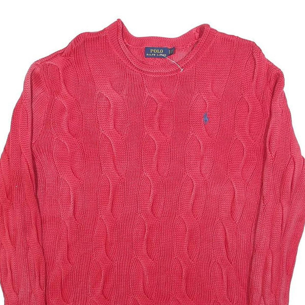 POLO RALPH LAUREN Womens Pink Cable Knit Cotton Blend Jumper S Crew Neck