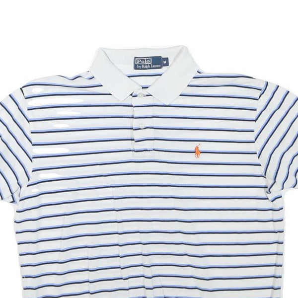 POLO RALPH LAUREN Womens White & Navy Blue Striped Short Sleeve Polo Shirt M