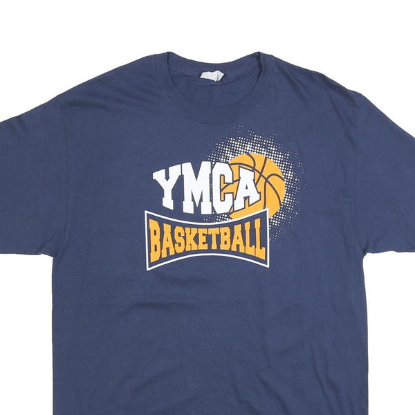 Port & company mens blue ymca basketball graphic t-shirt l short sleeve crew