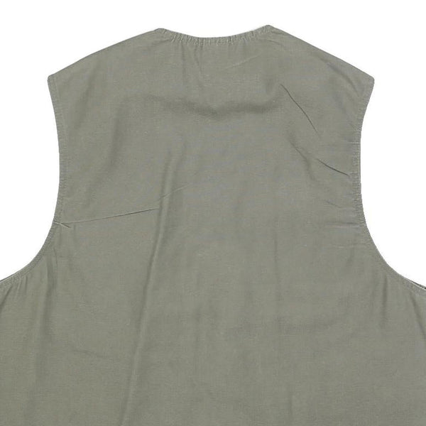 This PRIMO & SECONDO mens jacket features a muted green colour crafted from a cotton blend fabric, offering a comfortable and breathable wear. It has a simple, sleeveless design with multiple front pockets, including zipped and flap styles, ideal for carrying essentials securely.