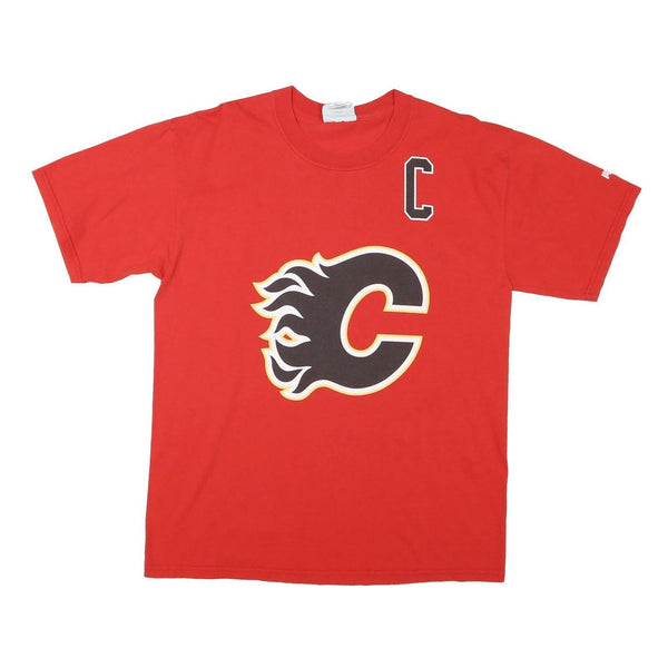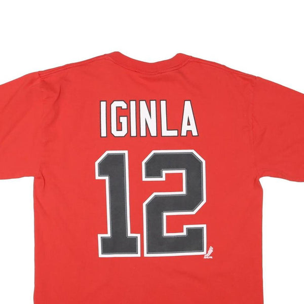 PUMA Mens Red Calgary Flames Iginla Graphic T-Shirt L Short Sleeve Crew Neck
