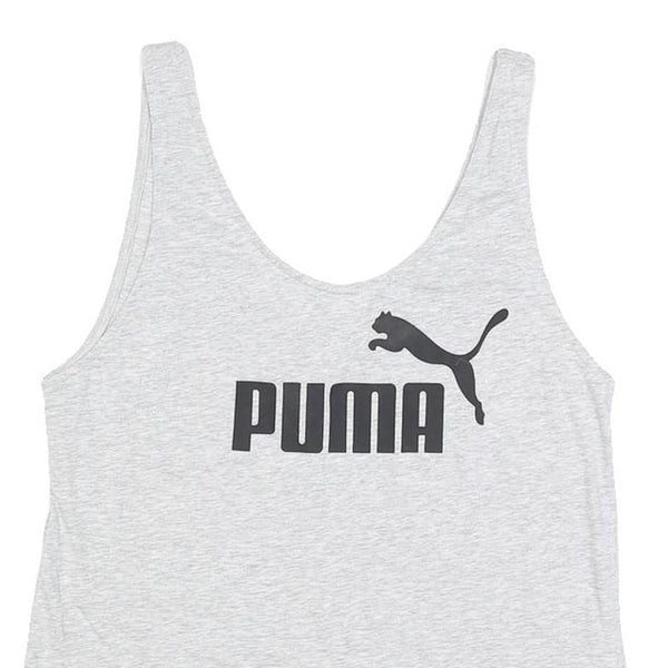 PUMA Womens Grey Sleeveless Top Scoop Neck Logo UK 8 Cotton Blend Casual