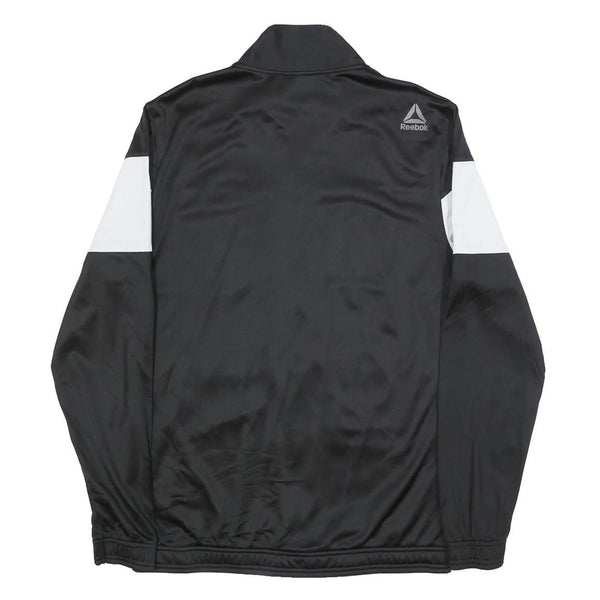 REEBOK Mens Black & White Track Jacket M Polyester Zip Plain Sports Casual