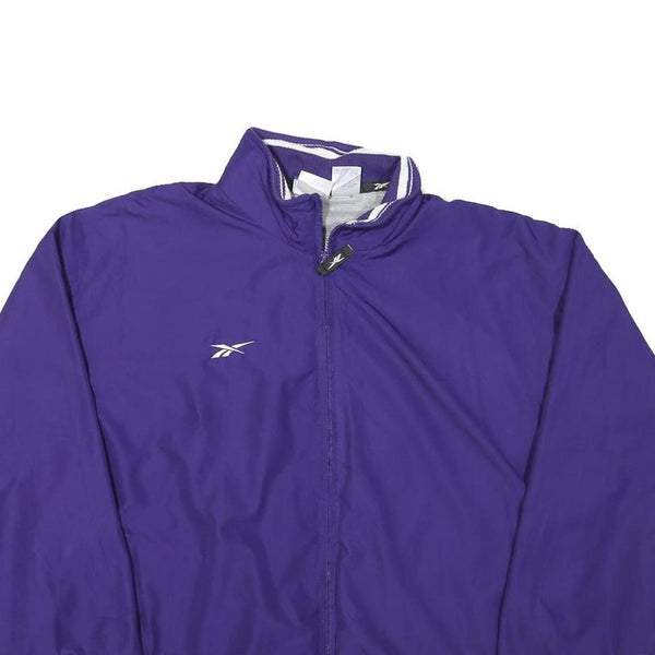 REEBOK Mens Purple & White Track Jacket L Polyester Blend Plain Zip Athletic