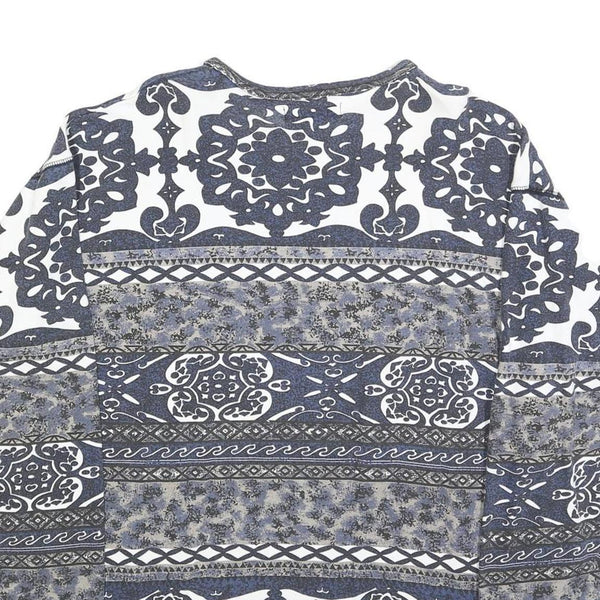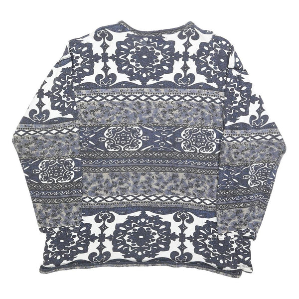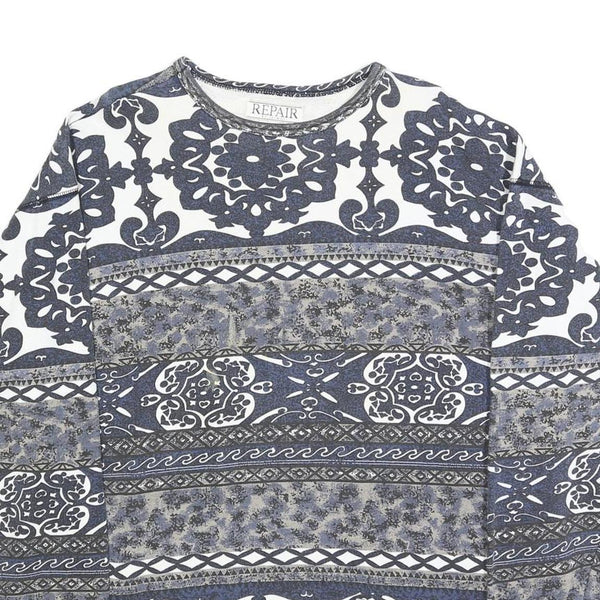 REPAIR BY JELMOLI Womens Blue & White Patterned Crew Neck Sweatshirt S Cotton