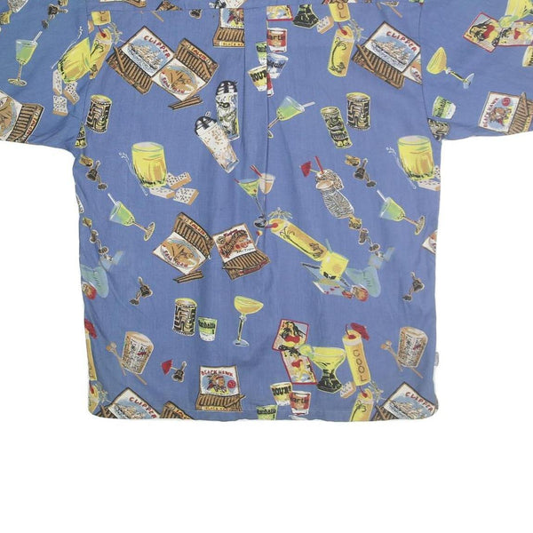 SAAB Mens Blue Cocktail Print Cotton Shirt L Summer Casual Short Sleeve