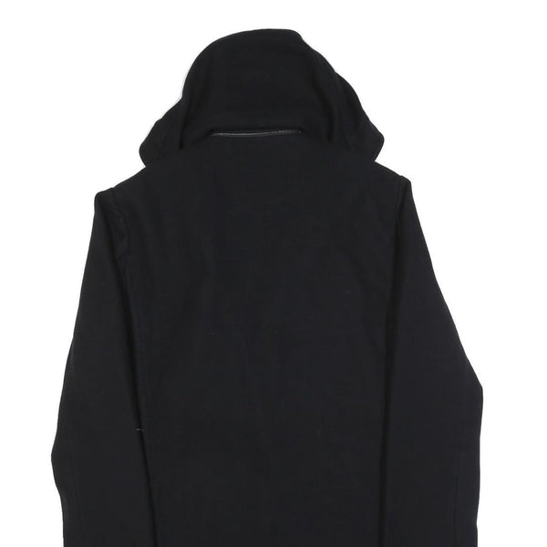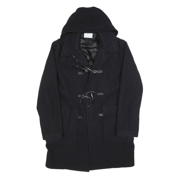 SANDRO Womens Black Wool Blend Button Jacket L Hooded Classic Fit Outerwear