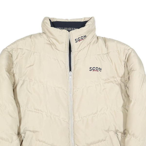 SCOTT Mens Beige Reversible Puffer Jacket L Polyester Blend Zip Plain Warm