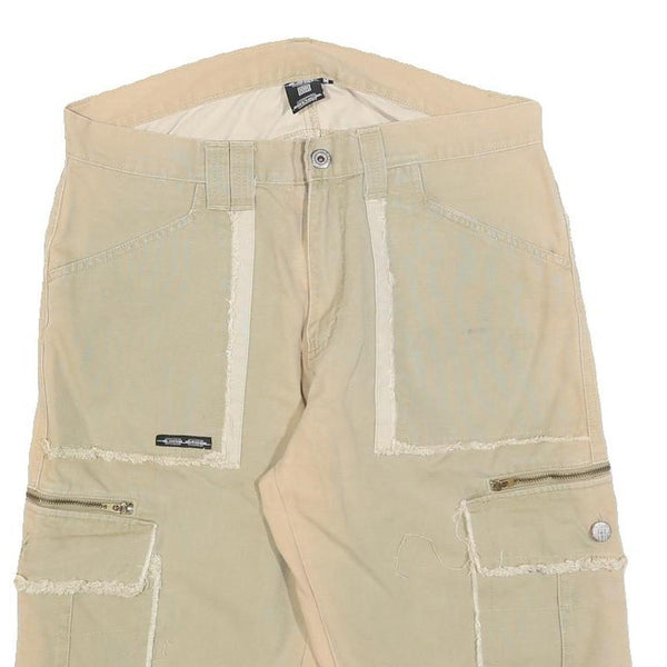 SIDEZ Mens Cotton Blend Beige Cargo Shorts M W32 Frayed Trim Pockets
