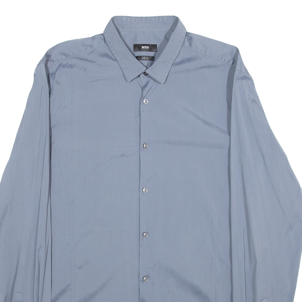 Slim Fit Stretch Mens Plain Shirt Blue Long Sleeve M