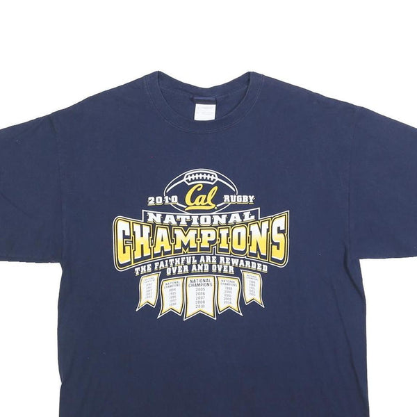 STEP AHEAD Mens Navy Blue Rugby National Champions T-Shirt L Short Sleeve Crew