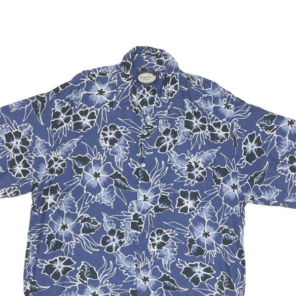 STRAIGHT DOWN Mens Blue Floral Rayon Shirt XL Lightweight Summer Casual
