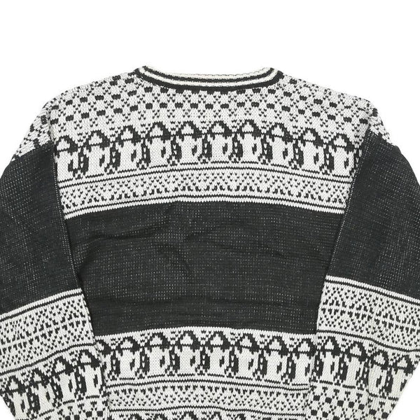 STYLEWISE Mens Black & White Patterned Jumper Crew Neck Chunky Knit XL Winter