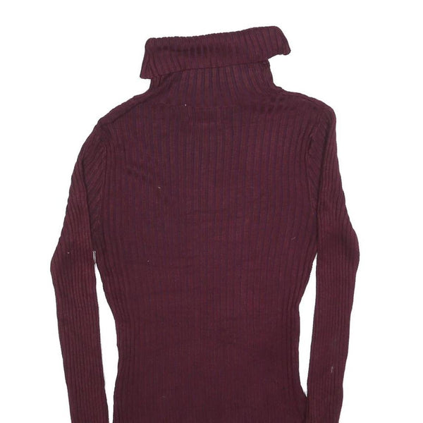 SWEATER PROJECT Womens Maroon Plain Roll Neck Basic Knit Jumper S Slim Fit Soft