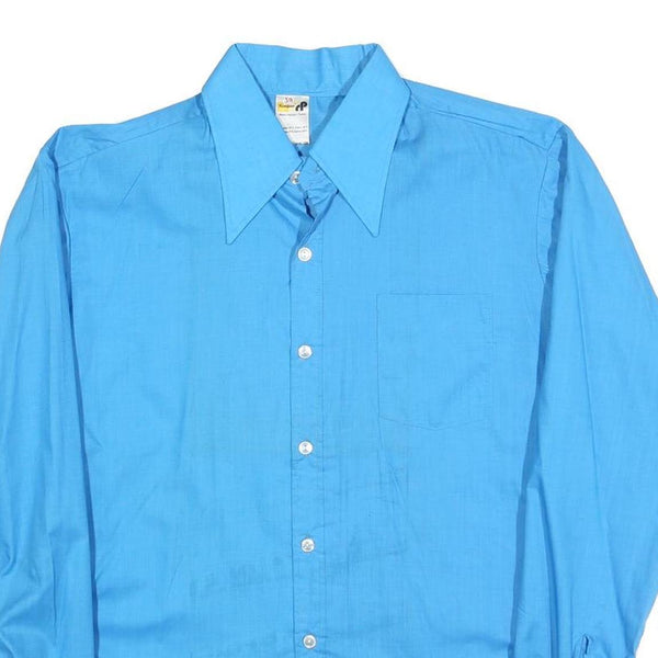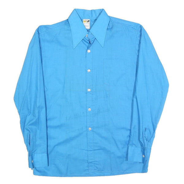 TEAGAL Mens Blue Plain Shirt L Long Sleeve Button Collar Classic Fit