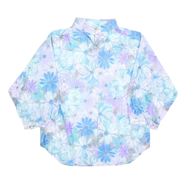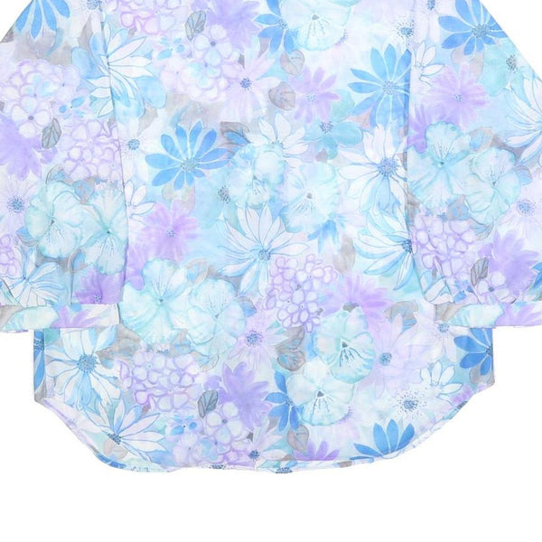 TEDDI Womens Blue Purple Floral Shirt Long Sleeve Button Neck L Floral Print