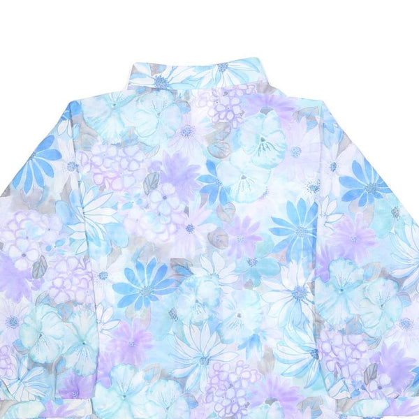 Teddi womens blue purple floral shirt long sleeve button neck l floral print