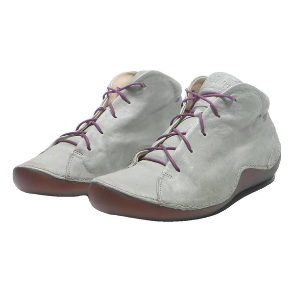 THINK Womens Casual Leather Ankle Boots Light Grey Purple Lace UK 6.5 Stylish