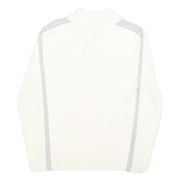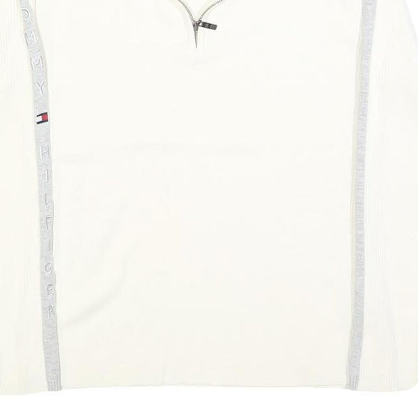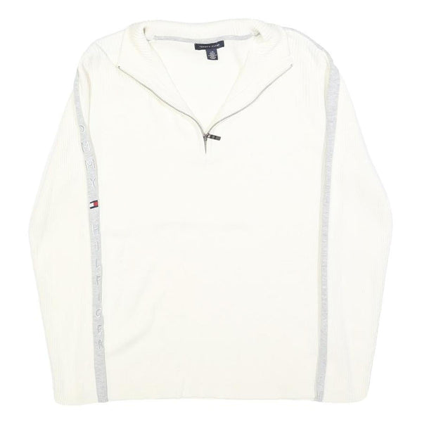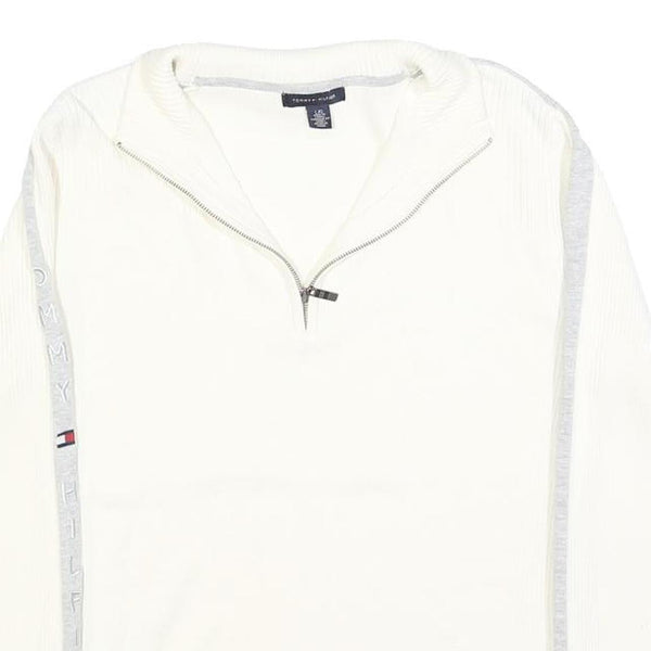 TOMMY HILFIGER Girls White & Grey Plain Jumper 1/4 Zip Basic Knit L Cotton Blend