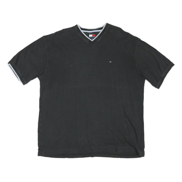 TOMMY HILFIGER Mens Black V-Neck T-Shirt XL Short Sleeve Cotton Blend Classic