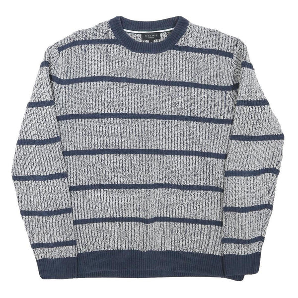 TOMMY HILFIGER Mens Blue Patterned Jumper Crew Neck Basic Knit L Casual Striped