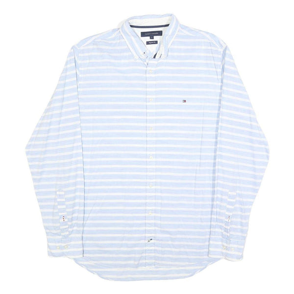 TOMMY HILFIGER Mens Blue & White Striped Shirt L Button-Down Collar Casual