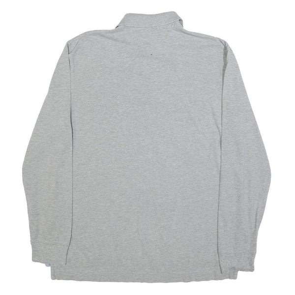 TOMMY HILFIGER Mens Grey Long Sleeve Plain Polo Shirt L Classic Cotton Blend