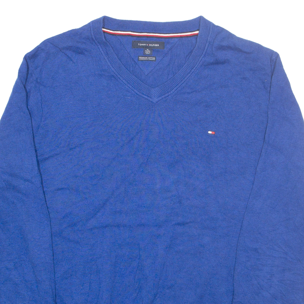 TOMMY HILFIGER Mens Jumper Blue V-Neck Tight Knit XL