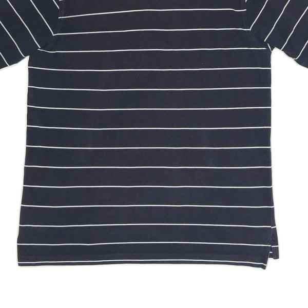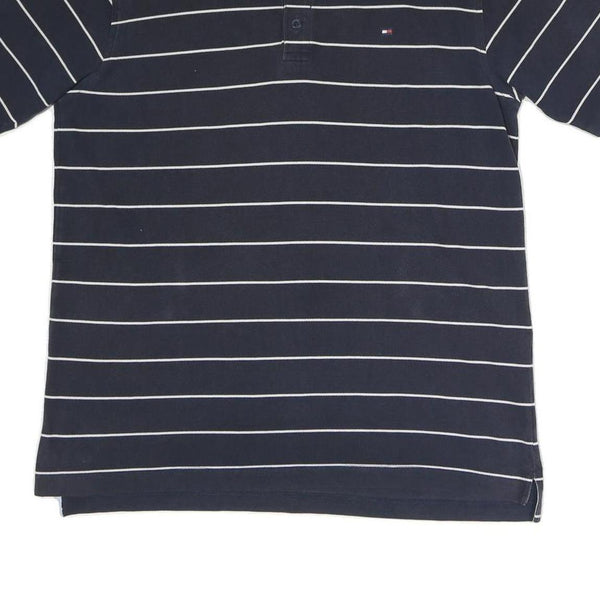 TOMMY HILFIGER Mens Navy Blue & White Striped Short Sleeve Polo Shirt L Classic
