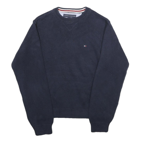 TOMMY HILFIGER Mens Navy Patterned Cotton Crew Neck Basic Knit Jumper S