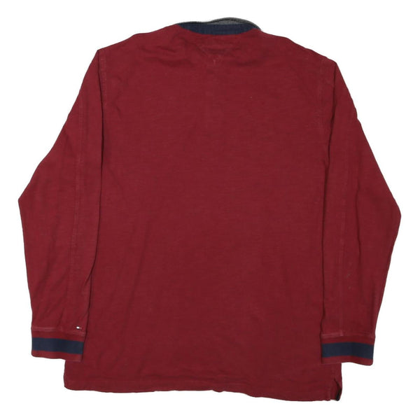 TOMMY HILFIGER Mens Red & Grey Long Sleeve Rugby Polo Shirt 2XL Cotton Blend