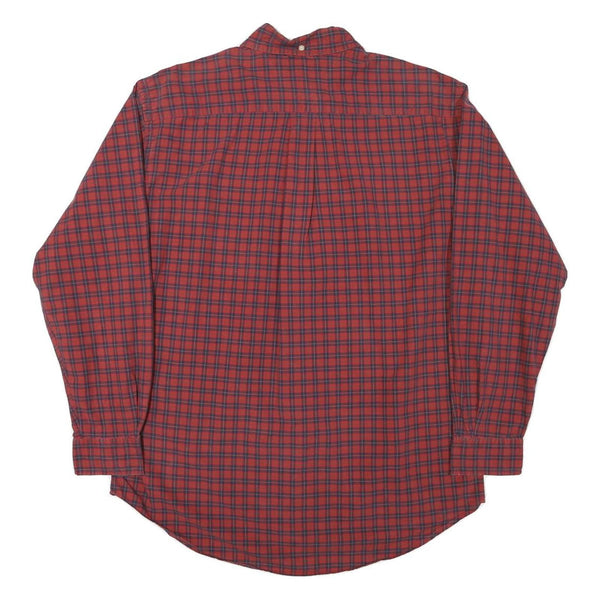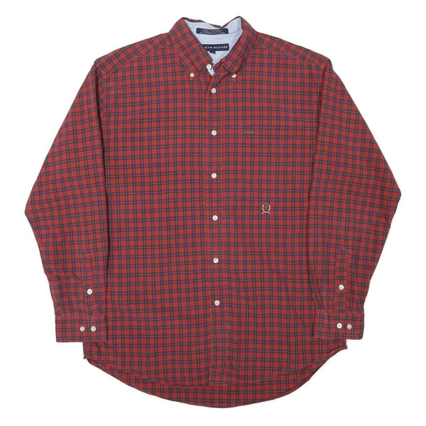 TOMMY HILFIGER Mens Red & Navy Check Shirt M Classic Fit Button-Down Collar Long