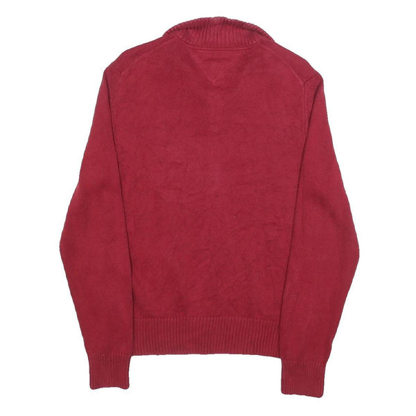 TOMMY HILFIGER Mens Red & Navy Striped Patterned Cotton Blend Jumper Full Zip