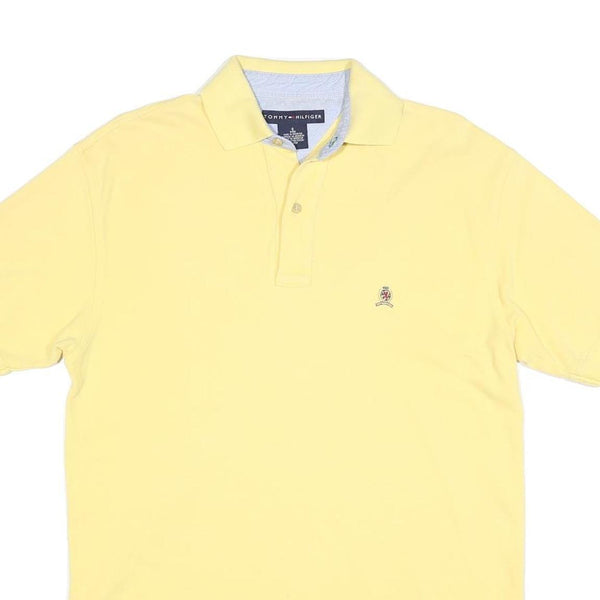 TOMMY HILFIGER Mens Yellow Short Sleeve Plain Polo Shirt S Cotton Blend Classic