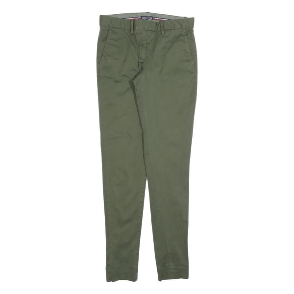 TOMMY HILFIGER Womens Cotton Blend Green Slim Tapered Trousers W30 L33 Stylish