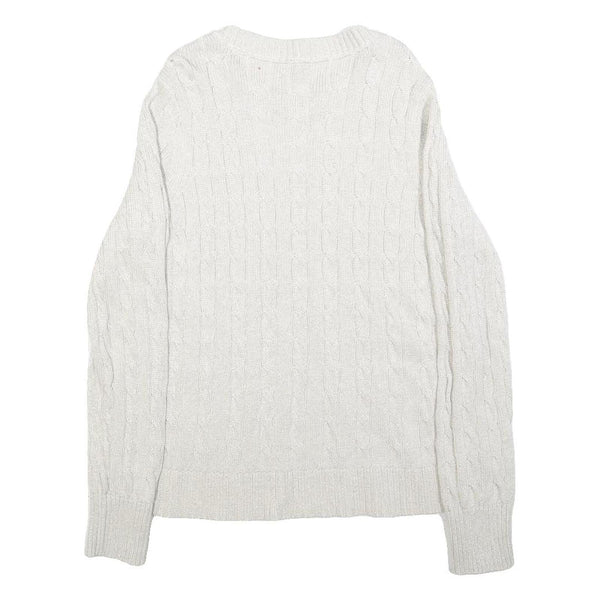 TOMMY HILFIGER Womens White Cable Knit Cotton Blend Jumper Crew Neck M