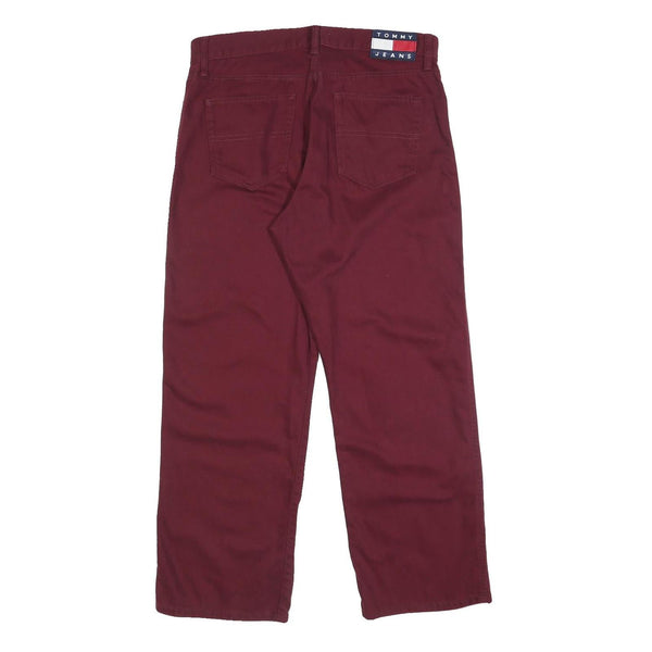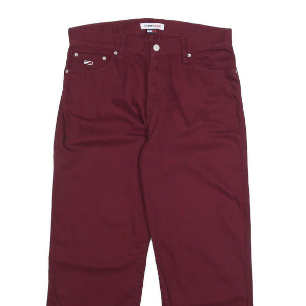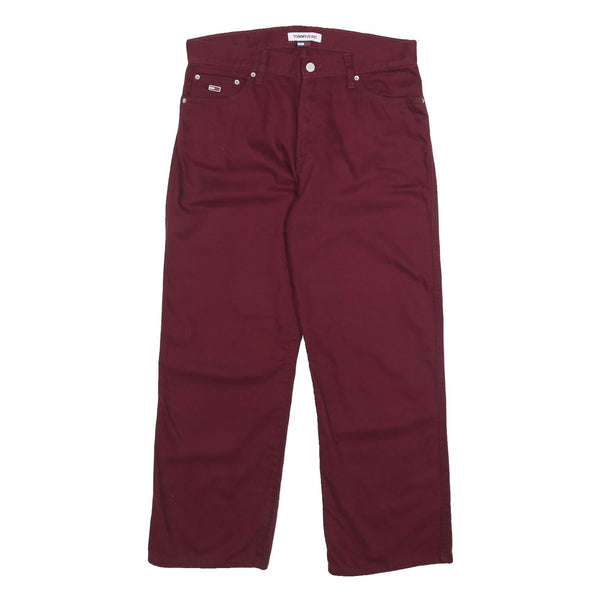 TOMMY JEANS Mens Jeans Maroon Relaxed Straight Denim W34 L30 Classic Casual