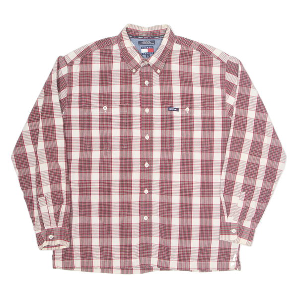 TOMMY JEANS Mens Shirt Red Check Long Sleeve L